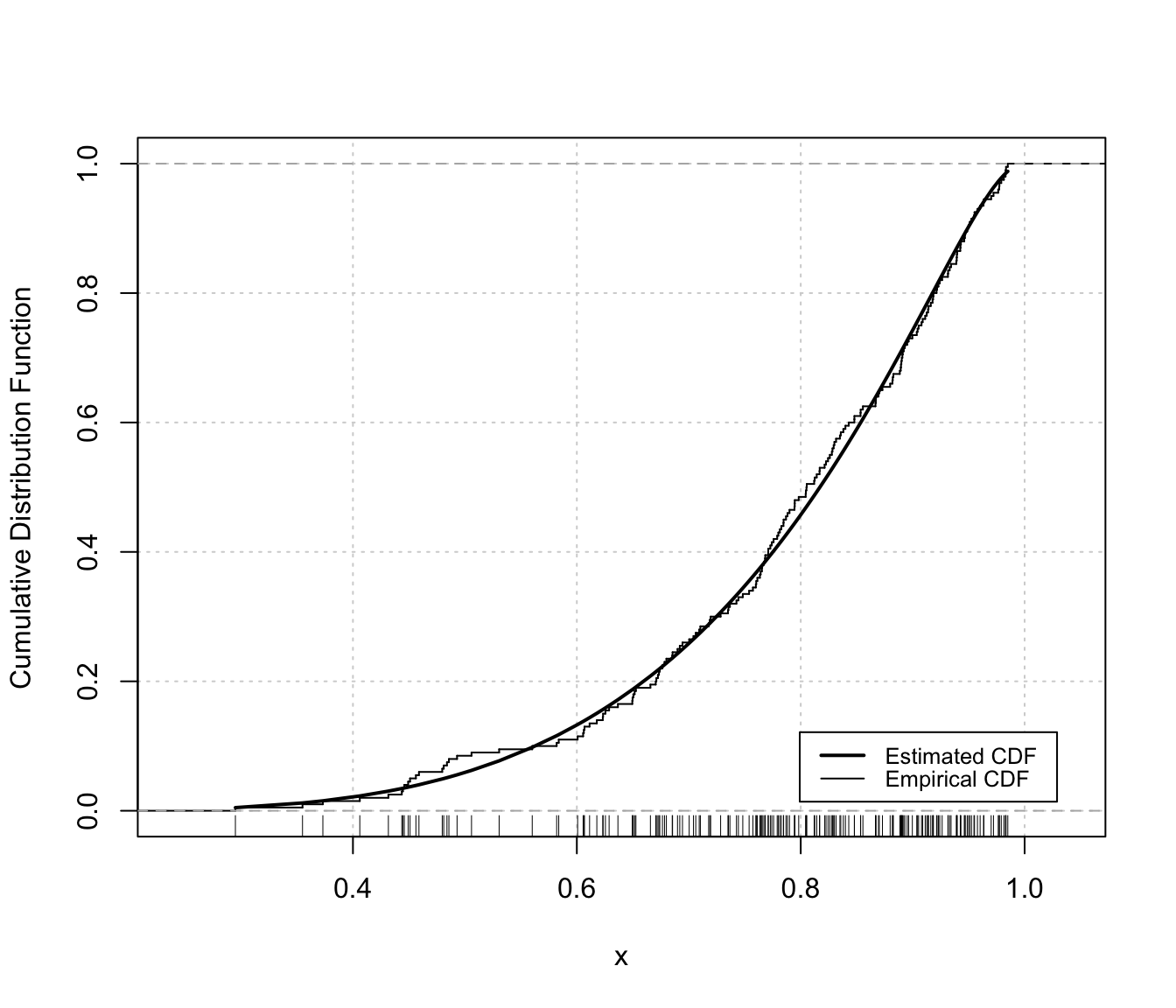densityMclustBounded.diagnostic(dens, type = "cdf")